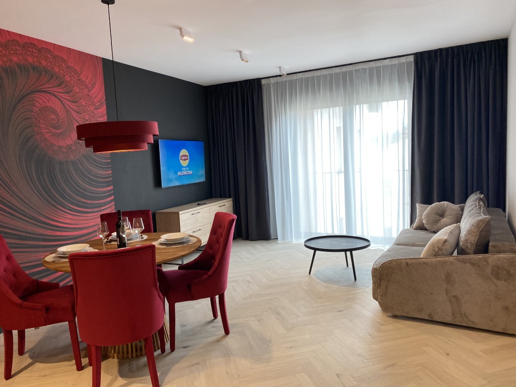 Apartament zlokalizowany w budynku blisko starówki, przy rzece Parsęcie. Lokal o powierzchni około 46 m2 zlokalizowany budynku z windą jest idealny dla pobytu do 4 osób. Apartament składa się z salonu z aneksem kuchennym, sypialni, łazienki z prysznicem. Nowoczesny wystrój apartamentu i jego nieprzeciętny styl wzbudzą w każdej osobie poczucie wyjątkowości. Apartament wyposażony został kompleksowo we wszystko, co niezbędne jest do spędzenia udanego, beztroskiego wypoczynku. Kuchnia wyposażona została w lodówkę, płytę indukcyjną, kuchenką mikrofalową, oraz inne sprzęty niezbędne do szybkiego przygotowania domowych posiłków. W salonie znajduje się rozkładana wygodna kanapa z miejscem do spania dla dwóch osób, stolik kawowy oraz telewizor. Sypialnie wyposażone zostały w komfortowe łóżka o wymiarach 160 x 200 cm. Dla gości przygotowaliśmy komplety pościeli oraz ręczników. Do dyspozycji bezprzewodowy Internet Wi-Fi.